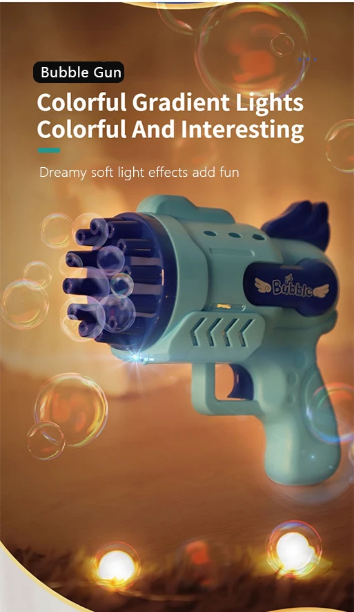 Blowing bubble maker Simply pour the bubble solution in, and press the power button- then watch the air fill with colorful bubble madness!