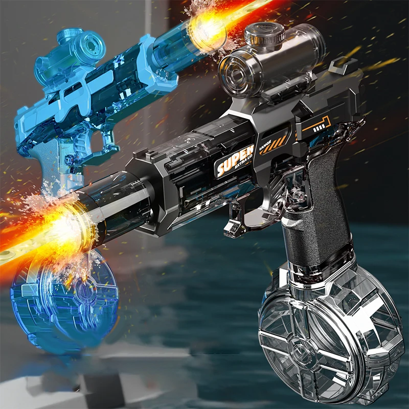 New Electric Water Gun With light Sprays Flame Effect Continuously High-pressure High-speed Powerful Outdoor Water Gun Toys