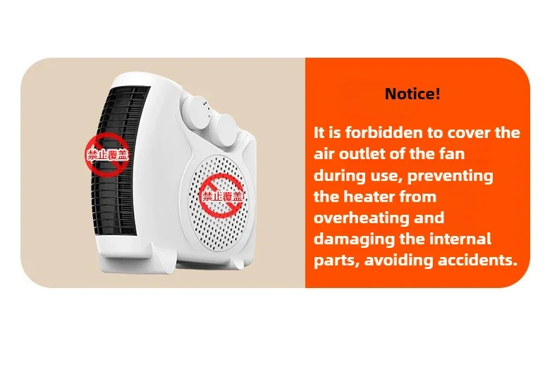 3. It is forbidden to cover the air inlet and outlet during the use of the heater to prevent the heater from overheating, causing damage to internal parts and avoiding accidents.