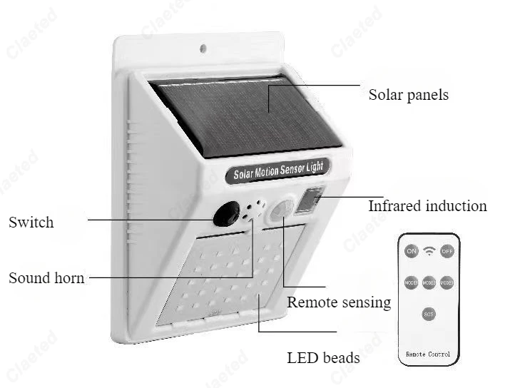 Creative New LED Solar Remote Control Alarm Light Human Body Sensing Light Outdoor Courtyard Anti-theft Alarm