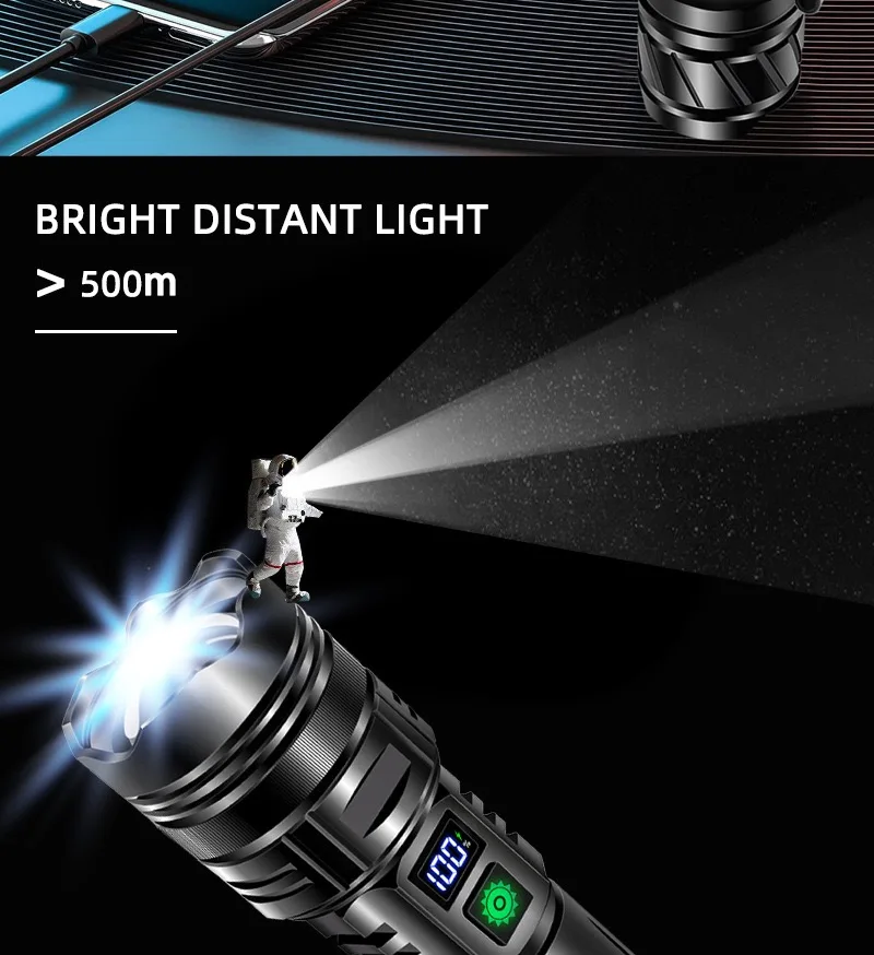 5000Lumen P90 LED Zoom Powerful Flashlight USB Rechargeable High Power Outdoor Patrol Camping Hunting Hiking Strong light Torch