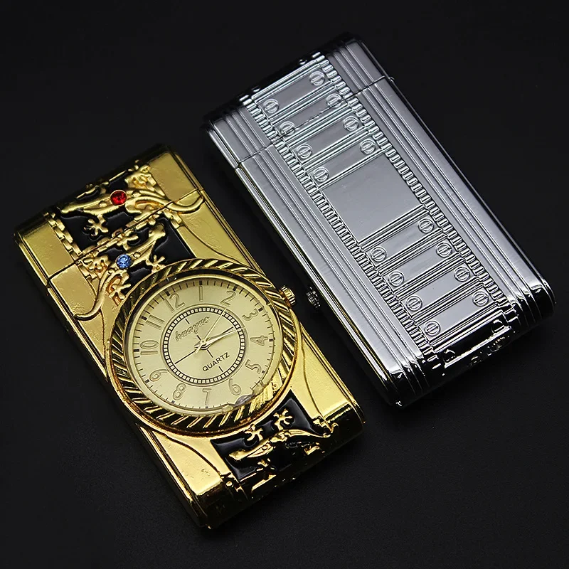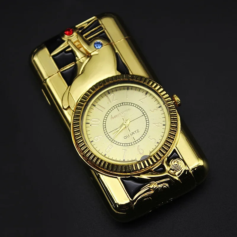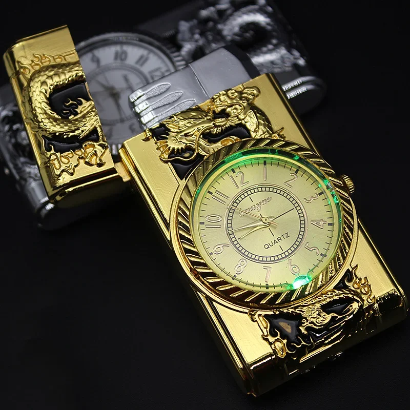 Luxury LED Gold Watch Windproof Jet Butane Lighter Torch Turbo Gas Inflatable Lighter Cigar Cigarette Accessories Men's Gift