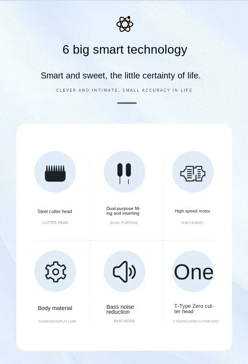 Function: Electric length adjustment,wet haircut,dry haircut,Fast Charging,Charging indication