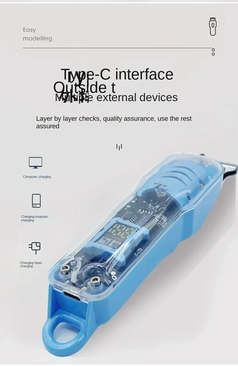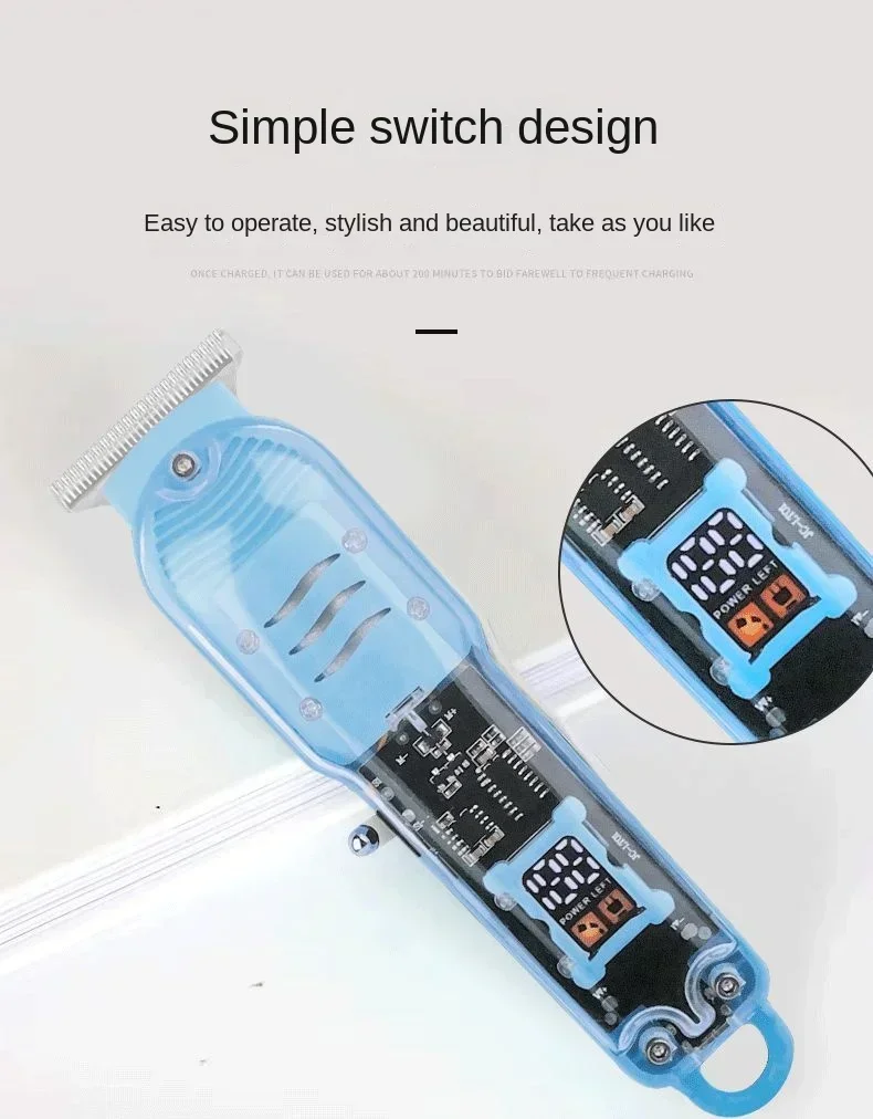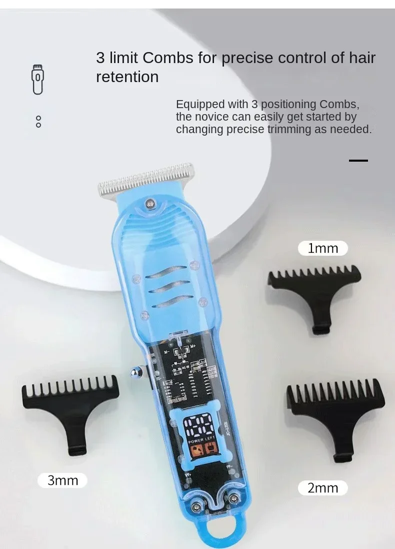 Transparent Electric Hair Trimmers Professional Hair Cutting Machine Rechargeable Clipper For Men Cordless Hair Cut Machine