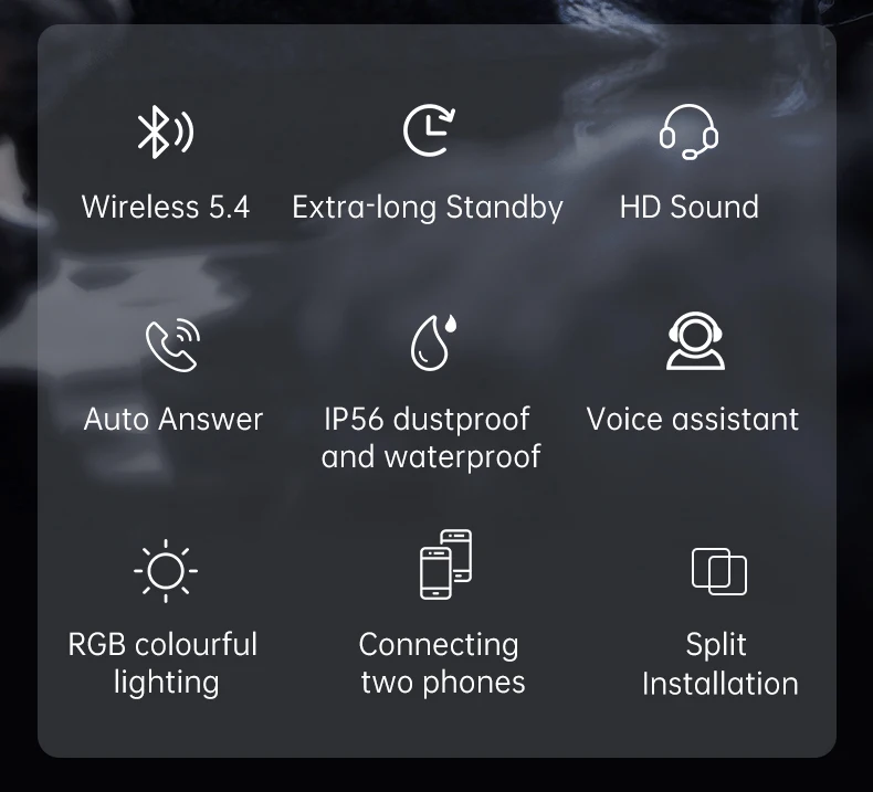Features: Bluetooth 5.4, waterproof IP56, clear and loud Bluetooth calls